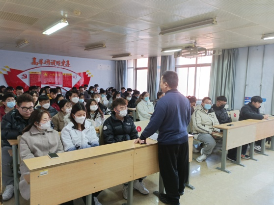 会议开始,赵望锋强调让学生们新学期严格落实好疫情防控要求。接着,赵望锋对宿舍卫生中常出现问题进行了强调,希望同学们能够遵守纪律,不带饭进公寓,及时将宿舍垃圾带出公寓,积极投身建设一个干净整洁的公寓宿舍环境。他还提醒各班班长及团支部书记,及时了解班级学生的个人情况。最后,赵望锋让各班班长督促学习较落后的学生,并提醒学生们上课认真听讲、努力完成学业。在座学生认真聆听,此次会议圆满结束。