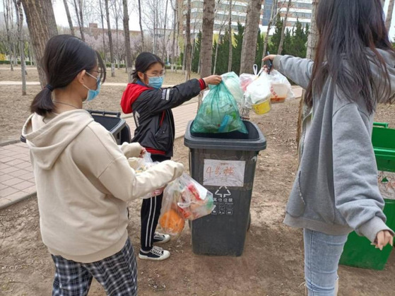 疫情防控封校期间,学院的志愿者和学生党员们主动承担了宿舍公寓楼大量的宿舍垃圾清运工作,为了减轻垃圾清运压力,积极倡导同学们主动在外出时自觉将垃圾袋系好,带至公寓外的垃圾桶、西外环的垃圾清运车内,还有的同学自发加入了志愿者队伍中,为疫情防控贡献自己的力量。