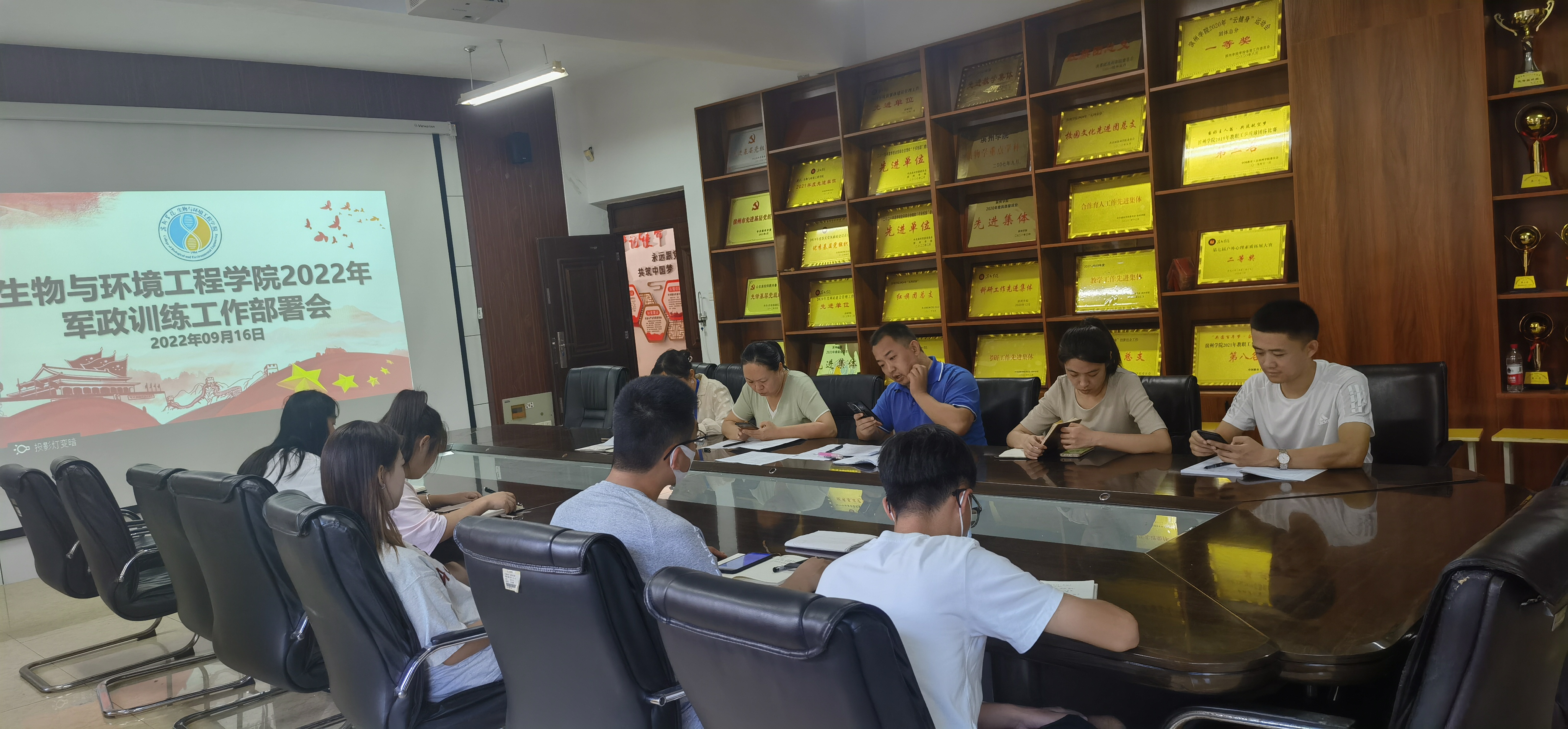 为全面做好新生军训工作,9月16日,生物与环境工程学院于实验中心B7-230会议室召开军训工作部署会议。此次会议由学生科长赵望锋主持。党总支副书记时芸出席,辅导员、学生会主要干部参加会议。