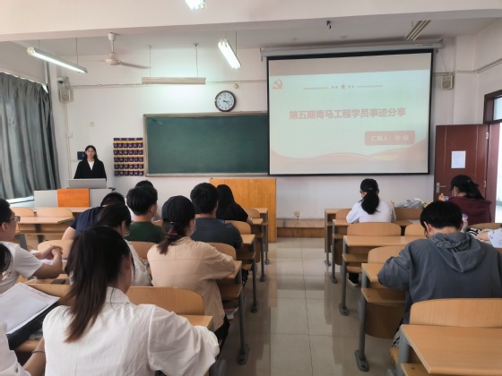 会议开始,学生会主席、青马班学员张天宇简单介绍了此次会议的主题,希望通过经验分享,加强理论学习,提高政治站位,提高工作效率,积极服务同学,努力成为新时代的青年马克思主义者。随后,李雪晗同学分享了青马班学习班的经历,希望同学们平时多读原著,认真研究马克思主义经典著作,在学思践悟中成长,同时也要自觉将人生追求同社会进步紧密结合,将“所学”化“所用”,让青春年华在为国家、为人民的奉献中焕发出绚丽光彩。接着,张克颖引用习近平主席的话“只有进行了激情奋斗的青春,只有进行了顽强拼搏的青春,只有为人民作出了奉献的青春,才会留下充实、温暖、持久、无悔的青春回忆。” 青马这一年的故事积极进步,丰富多才,她说,现在是青年大有可为、也必将大有作为的时代,鼓励青年团员们珍惜时光,努力学习,做一个能够推动时代进步的人。最后,孙婧分享了青马班的学习感想,她说,一个个色彩斑斓的奋斗梦想,都会在不舍寸功中开花结果,都会在青春奋斗中出彩闪光。