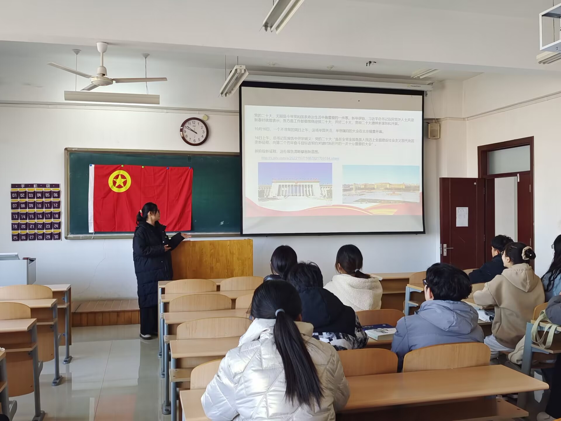 中国共产党第二十次全国代表大会在北京召开,为深入贯彻党的二十大精神,引导广大共青团员坚定不移听党话、跟党走,坚定理想信念,激发奋斗热情,11月我院团总支组织各团支部开展“深入学习贯彻党的二十大精神”主题团日活动。