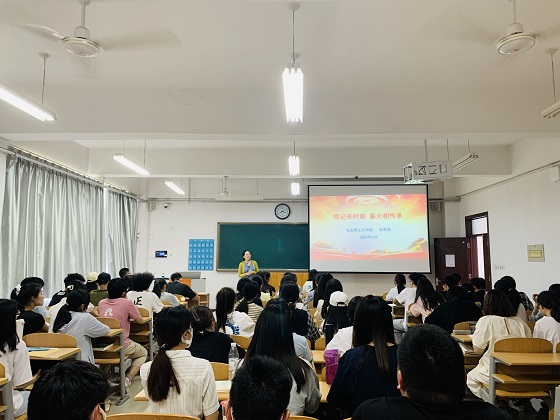 为进一步在青年团员中加强红色思想教育,深入贯彻习近平总书记关于“不忘初心、牢记使命”重要指示精神,迎接即将到来的党的二十大,2022年5月中旬,校宣讲团成员,马克思主义学院的谷菲菲老师于8号教学楼504教室,以“铭记来时路 薪火相传承”为主题,为生工学院青年团员带来了一场别开生面的团课。
