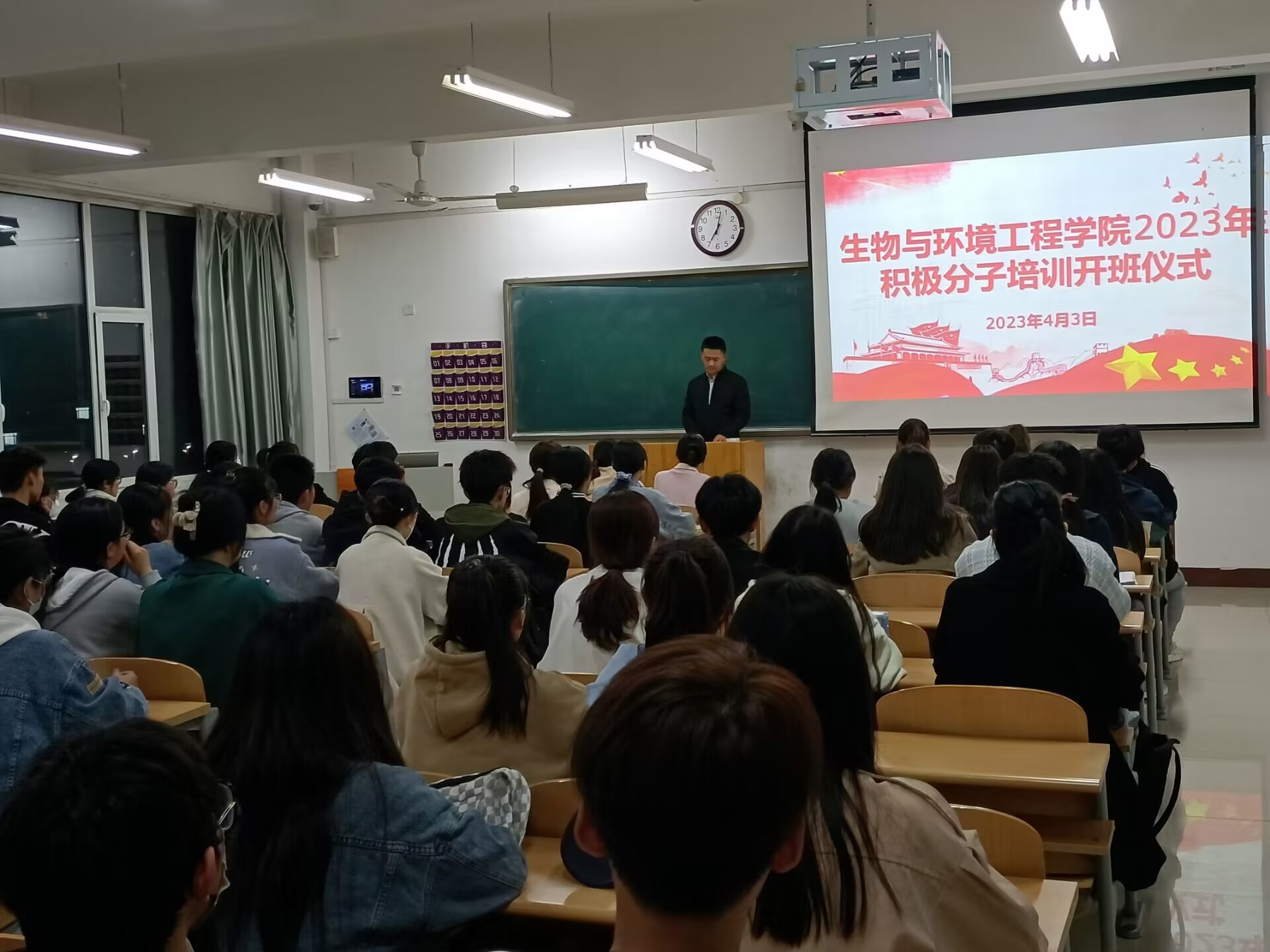 为加强学生党支部建设,4月3日,生物与环境工程学院2023年入党积极分子培训开班仪式在教学楼8号教学楼402教室正式举行。此次会议由学生党支部书记满强主持,全体入党积极分子参加。