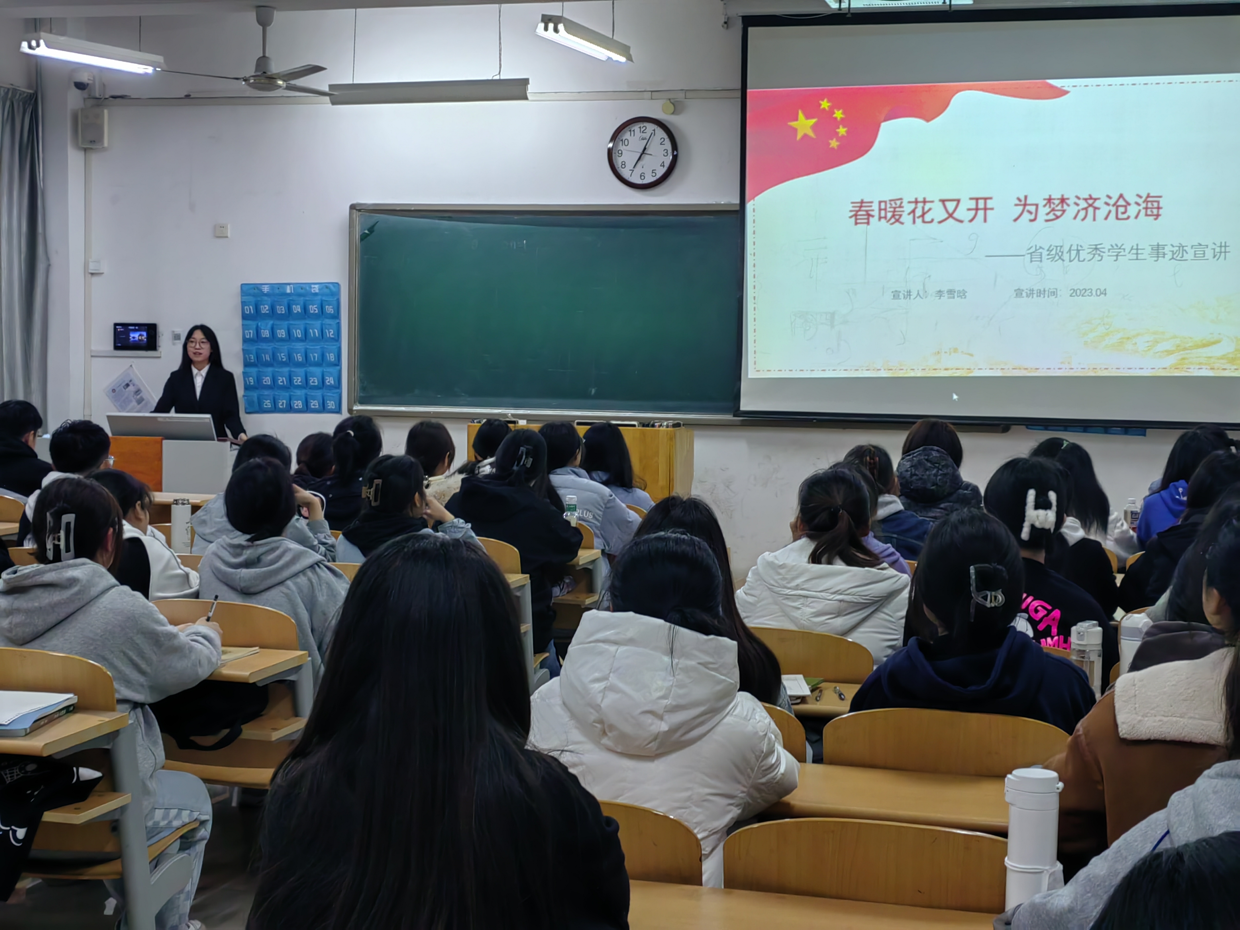 为进一步在同学们中普及“省三优”相关知识和内容,宣传获此殊荣的学生的斐然成绩,激励学生们能认真学习并加强实践精神,4月6日晚,由省级优秀学生干部张天宇、省级优秀学生李雪晗、张尹宣,在8号教学楼面向2022级学生介绍个人经历和所获荣誉。