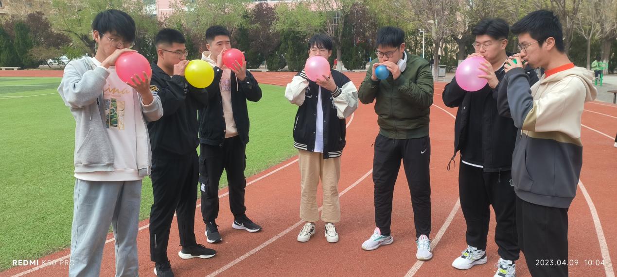 首先,每班派出10名同学参加吹气球游戏。每个人都使出全力力争第一。之后,各班级同学进行自由分组,做好充分准备工作,开始进行接力挑战“我的毽子不落地”游戏。每组同学之间,通过用脚踢毽子以达到毽子传递的目的。游戏同时,由工作人员进行时间记录。用时最快,完成最好的小组取得胜利,各小组名次依次排序。