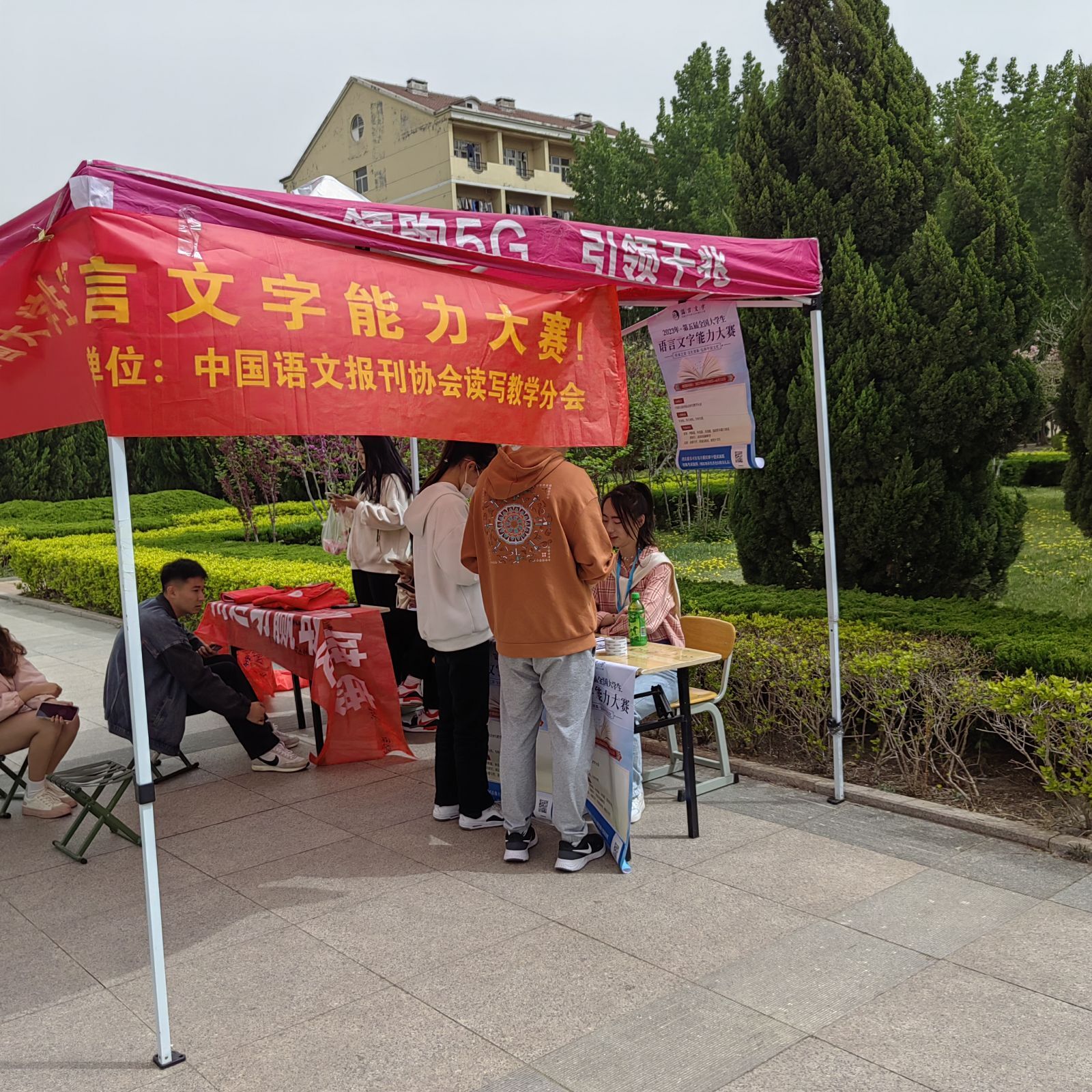 为深刻弘扬中华传统文化和民族精神,助力推广普通话,同时进一步提高大学生的语言文字规范意识,发挥语言文字的浸润作用,感染同学们去主动了解中国优秀的语言文学作品,鼓励大家积极报名大学生语言文字能力大赛,4月15日,生物与环境工程学院在校园里对本次大赛开展线下宣传工作,以便于同学们深入了解比赛内容及相关事宜。