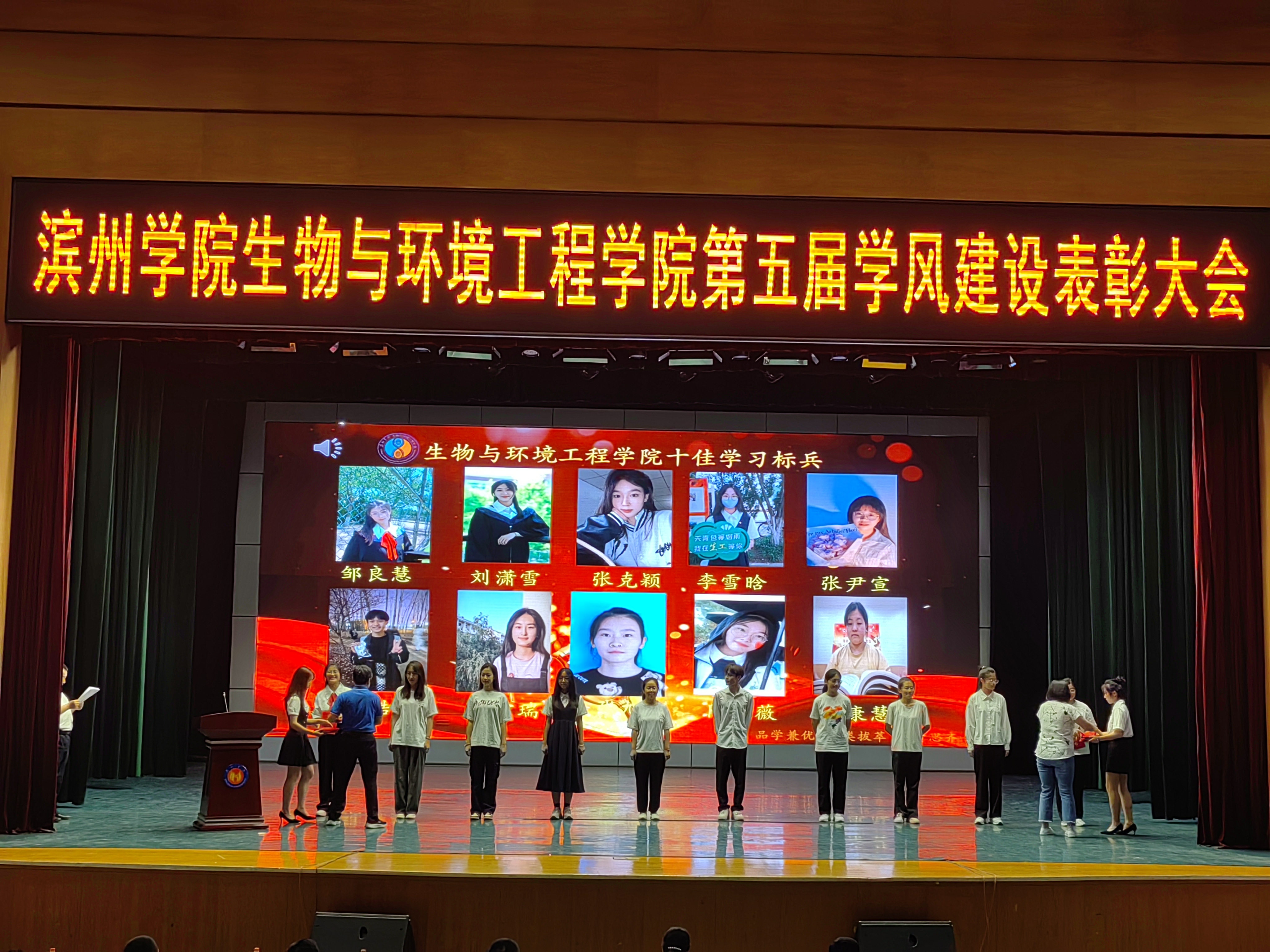 学风即学校的学习风气。从广义上讲就是学校师生员工在治学精神、治学态度和治学方法等方面的风格,也是学校全体师生知、情、意、行在学习问题上的综合表现,学风对学生的成长起着重大的作用,对学校的发展和建设产生深远的影响。大会开始,赵望锋首先上台对在座的老师,同学们表示热烈欢迎。之后,副院长吴涛宣读《滨州学院生物与环境工程学院关于表彰2022-2023学年学风建设先进集体、先进个人的决定》。接着,赵望锋主持颁奖典礼,并与获得“十佳英语学习标兵”“十佳学习标兵”“十佳学生干部”,“十佳优良学风宿舍”“十佳学风模范班集体”代表学生合影留念。最后,左之涛对获奖同学表示祝福以及为本次学风表彰大会进行总结。