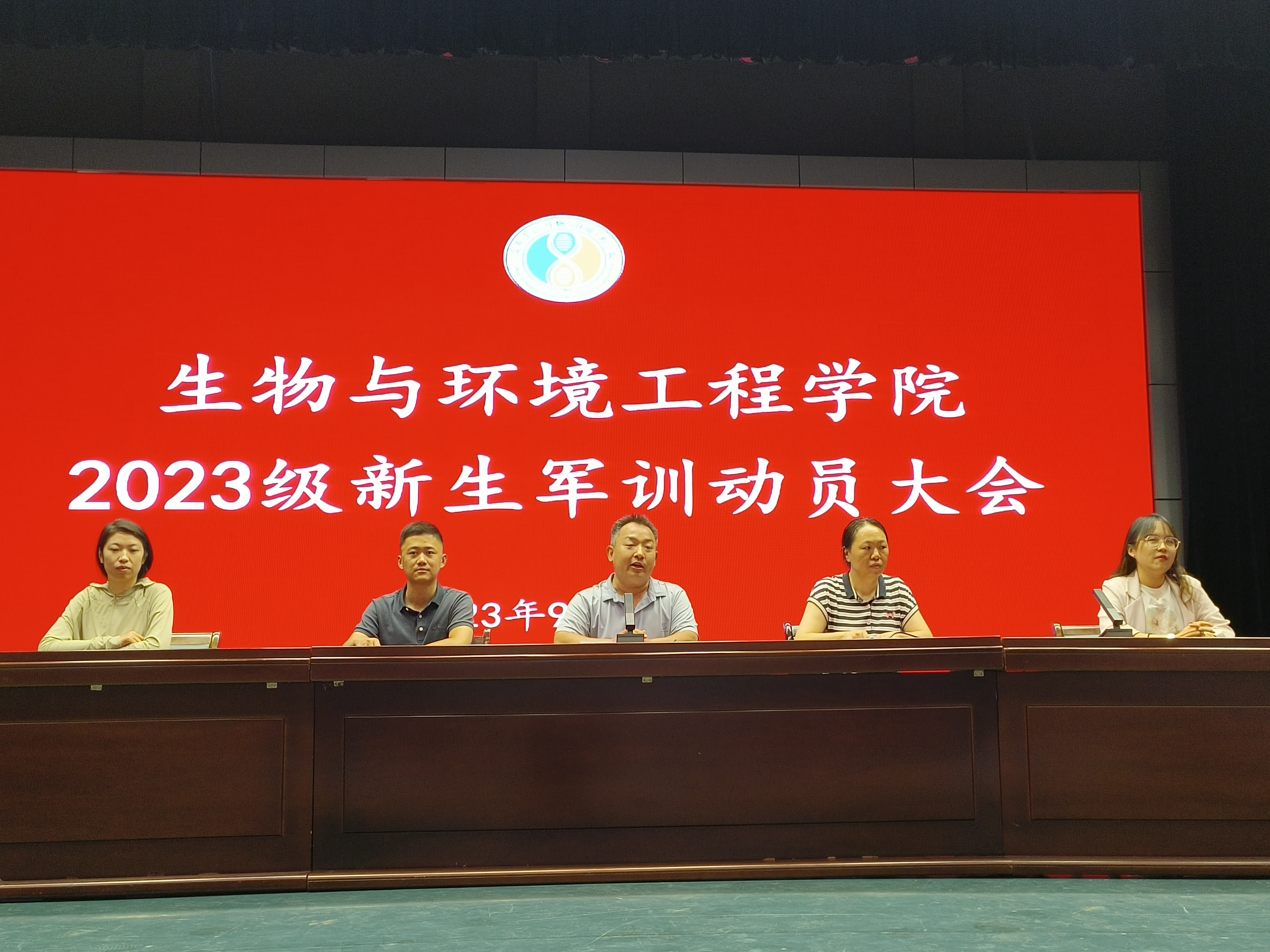 为帮助2023级新生了解军训的目的和意义,增强新组织纪律观念,9月3日,生物与环境工程学院在学苑会堂召开2023级新生军训动员大会,学生科长赵望锋老师主持,全体辅导员及2023级全体新生参与。