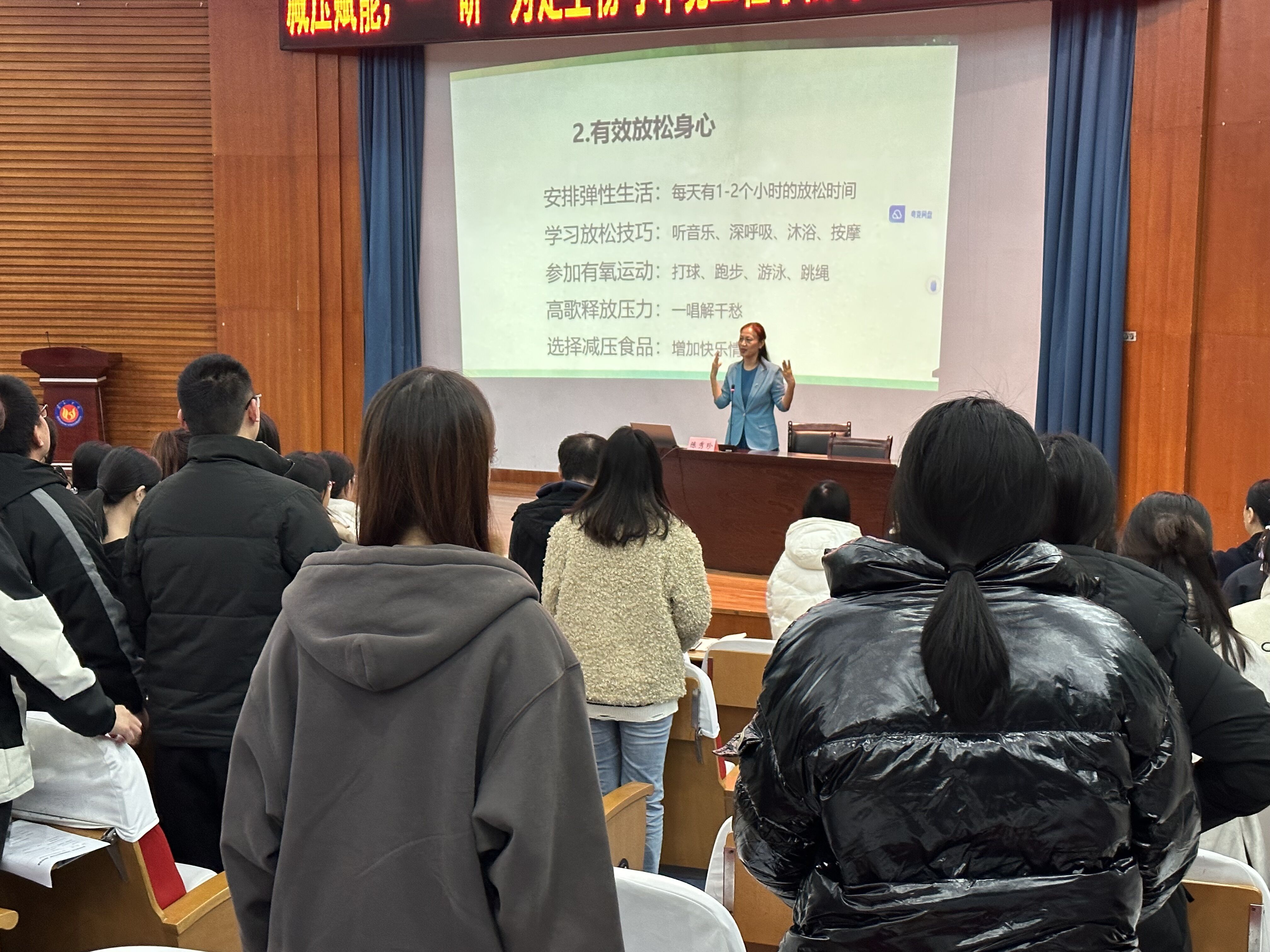 2024年硕士研究生考试时间临近,为帮助考研学生缓解备考焦虑,掌握科学减压方法,11月9日,生物与环境工程学院在明德报告厅举办减压赋能,一“研”为定考研学生心理减压活动。此次活动特邀教师教育学院陈秀珍教授做报告,党总支书记左之涛,党总支副书记时芸,教务科科长赵丽萍、辅导员、班主任,和2020级全体考研学生参加。