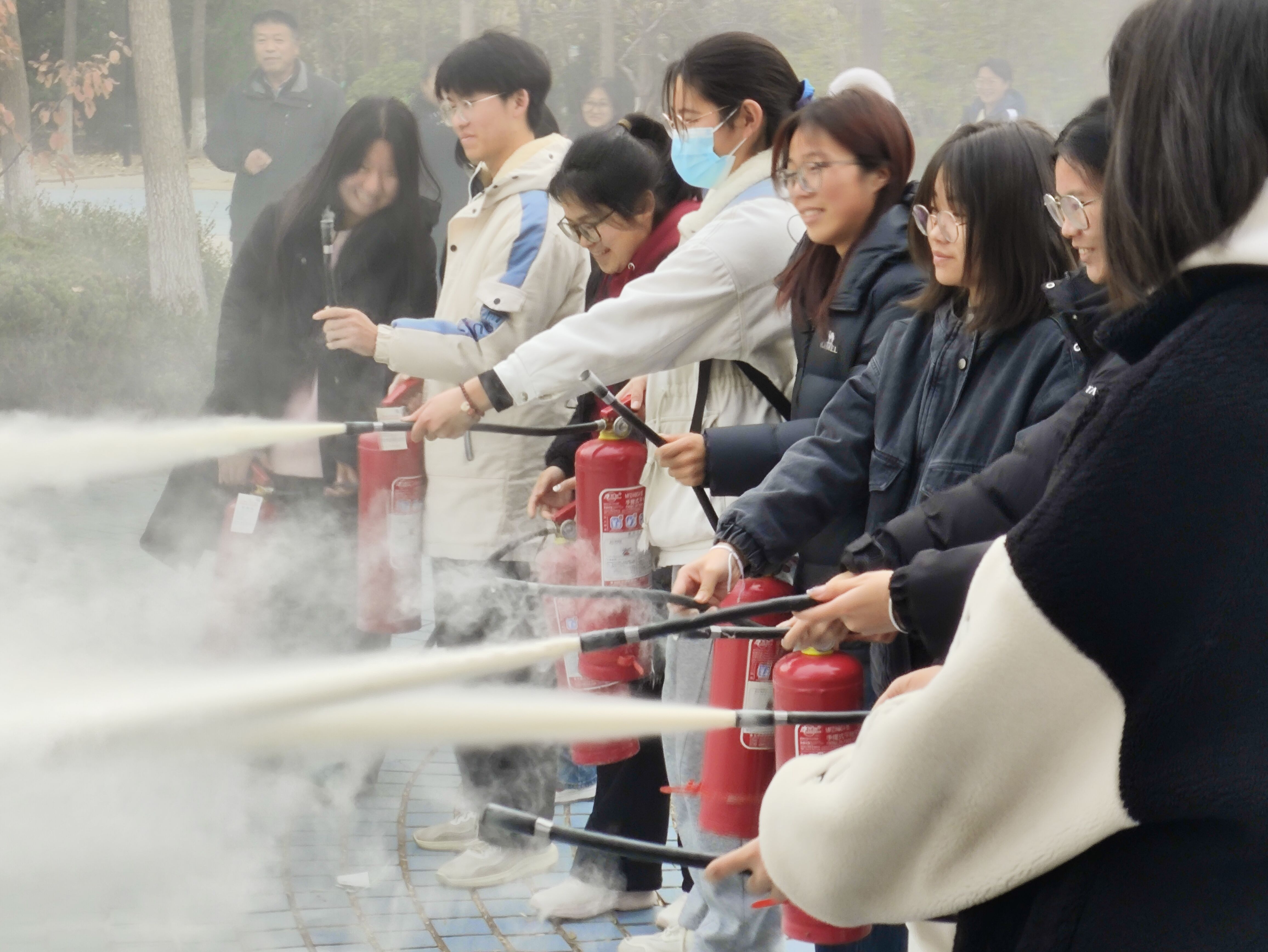 活动开始,赵望锋老师首先强调了冬季火灾发生的危害性以及预防火灾的重要性,提醒同学们要牢固树立好防火的意识,掌握防火的技能。然后,保卫处消防科杨玉杰科长进行了现场授课,他强调,冬季干燥容易引发火灾,要提高防火意识,远离火灾隐患,结合学院特点,强调了在实验楼内的各种安全隐患种类以及处置方法。他结合我校和各大高校的实际案例,讲解了火灾的危害性,强调从细微之处防患于未然,尤其是在宿舍内要做到不违规用电,不使用大功率电器,及时清除在阳台上的易燃杂物,严格做实做细防火措施。希望每个人都承担起消防安全的责任,积极配合消防安全隐患排查的工作。最后,杨玉杰老师向同学们展示了如何使用灭火器,并且指导每位同学亲自操作,使每位同学都掌握了对灭火器使用方法。