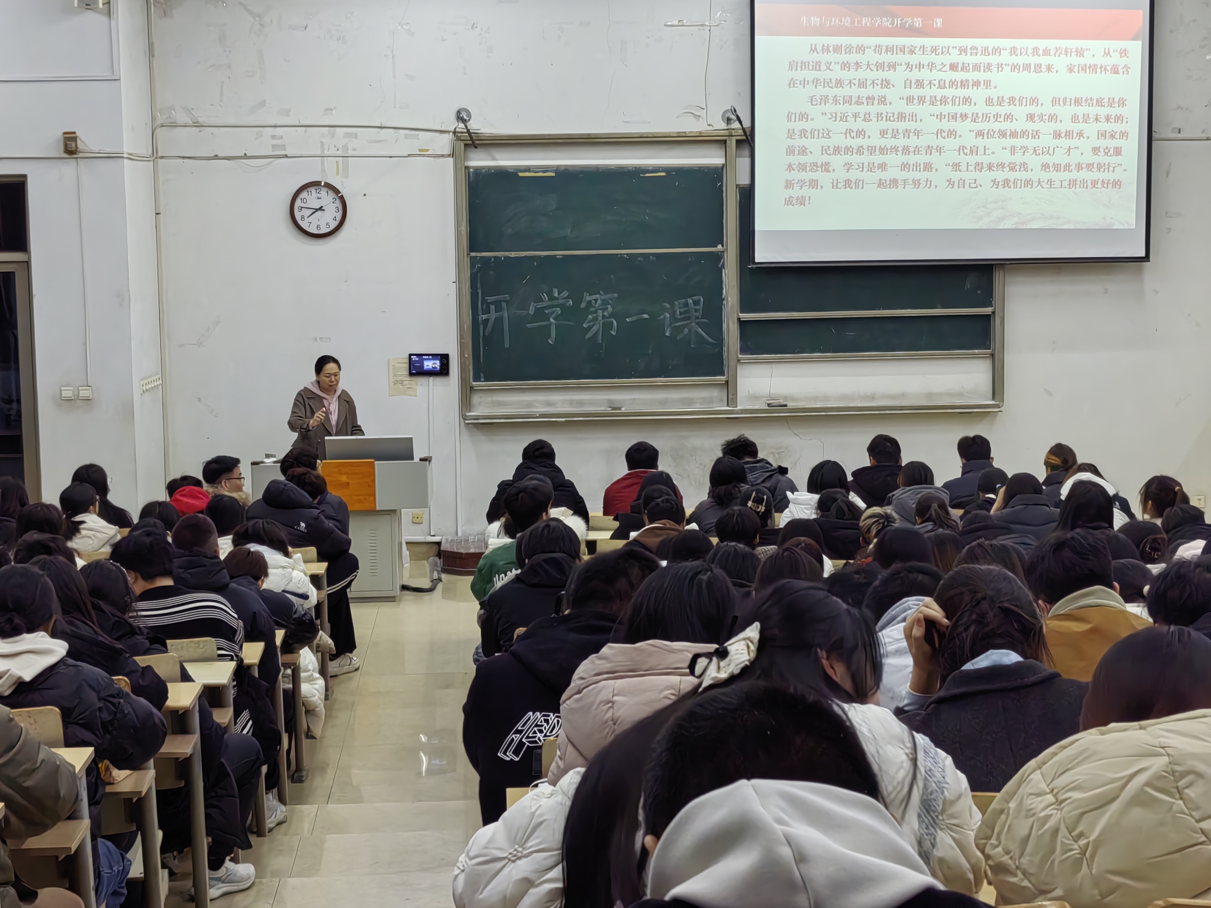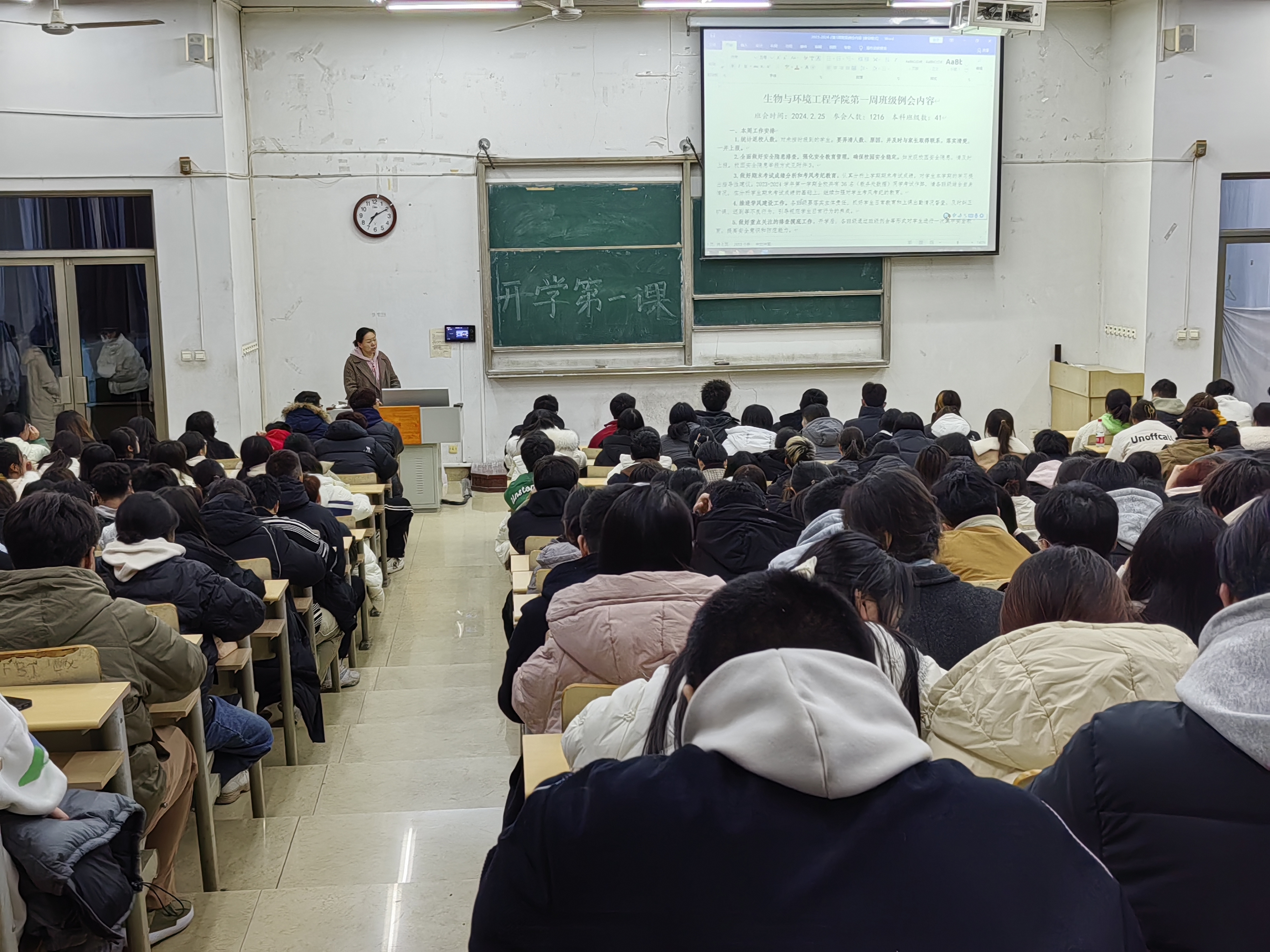 为了保障学生顺利调整生活状态,全身心投入到新学期的学习与生活中,我院于2月25日晚在1教308教室隆重召开了“开学第一课”会议。本次会议由我院党总支副书记时芸同志主持,22级、23级全体同学参与。
