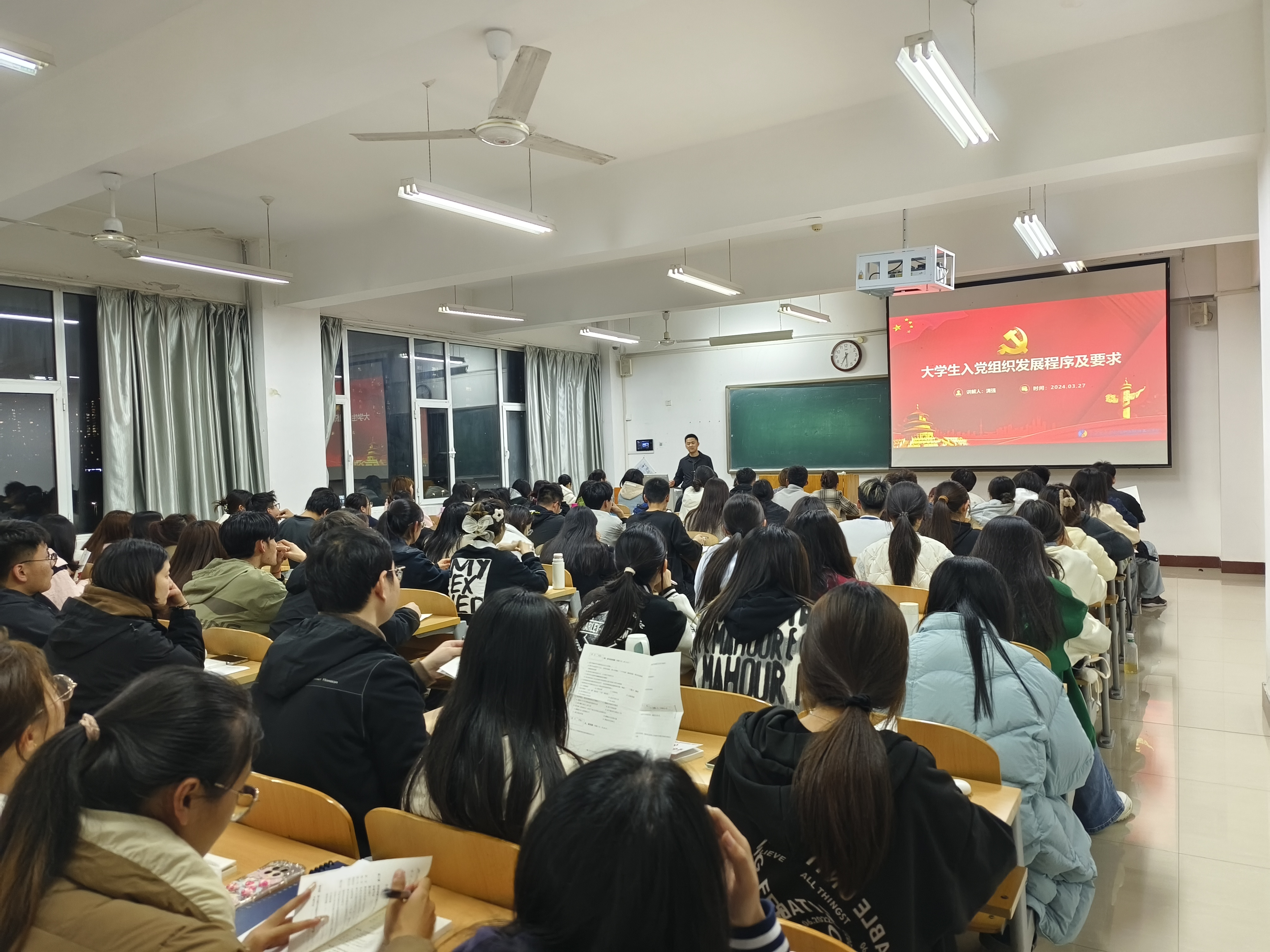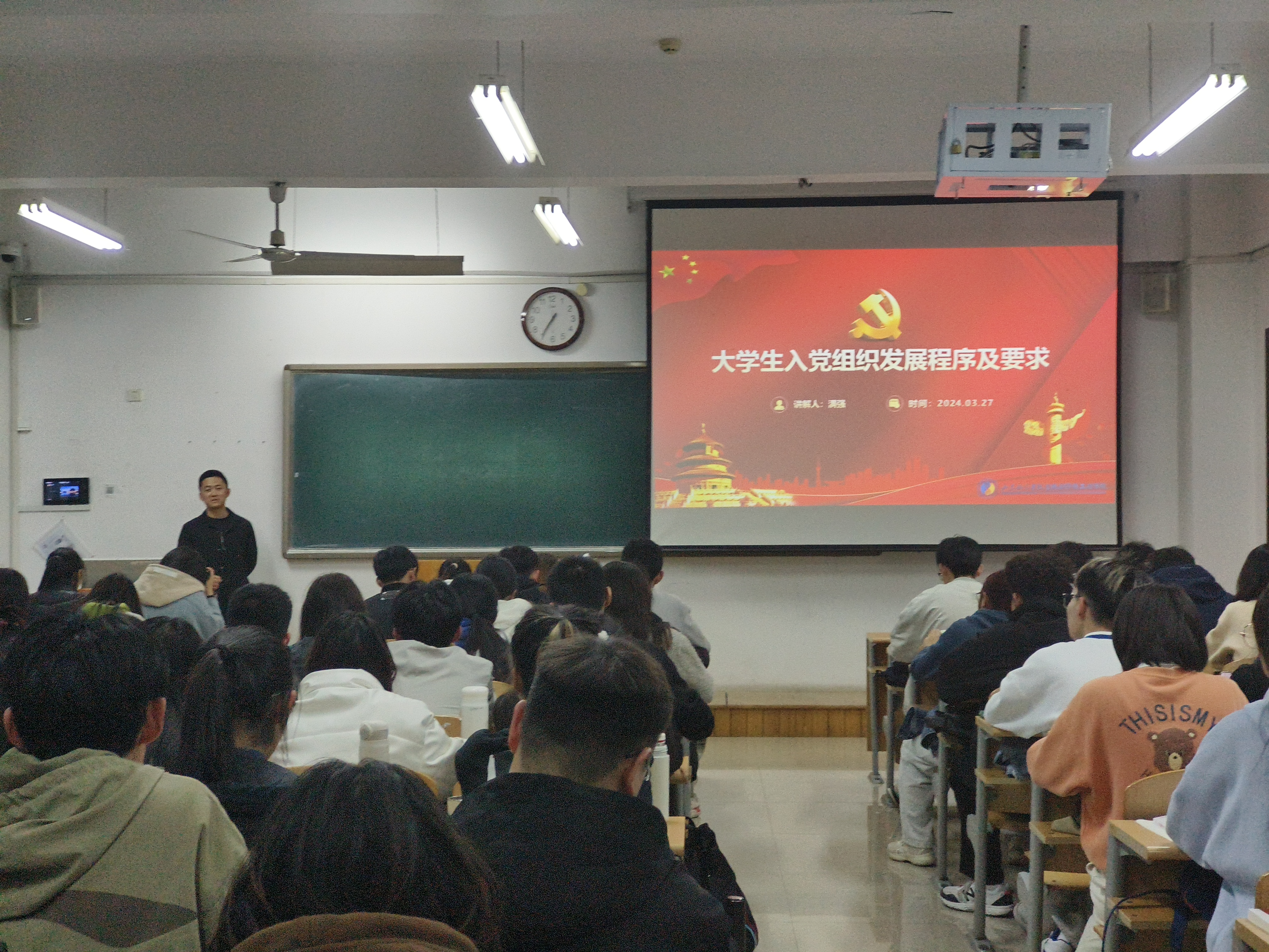 2024年3月27日晚,生物与环境工程学院辅导员满强在8教401入党积极分子培训会上讲解了学生入党组织发展程序及要求。本次培训旨在帮助广大学生更好地了解入党的具体步骤和条件,激发大家的入党热情,引导更多有志青年积极投身党的伟大事业。同时为在座的同学们积极加入党组织提供了宝贵的指导和建议,使同学们不仅深入地了解党的基本条件和入党过程,增强对党的认识和信任,而且有助于了解党员应具备的基本素质、政治觉悟和道德品质。