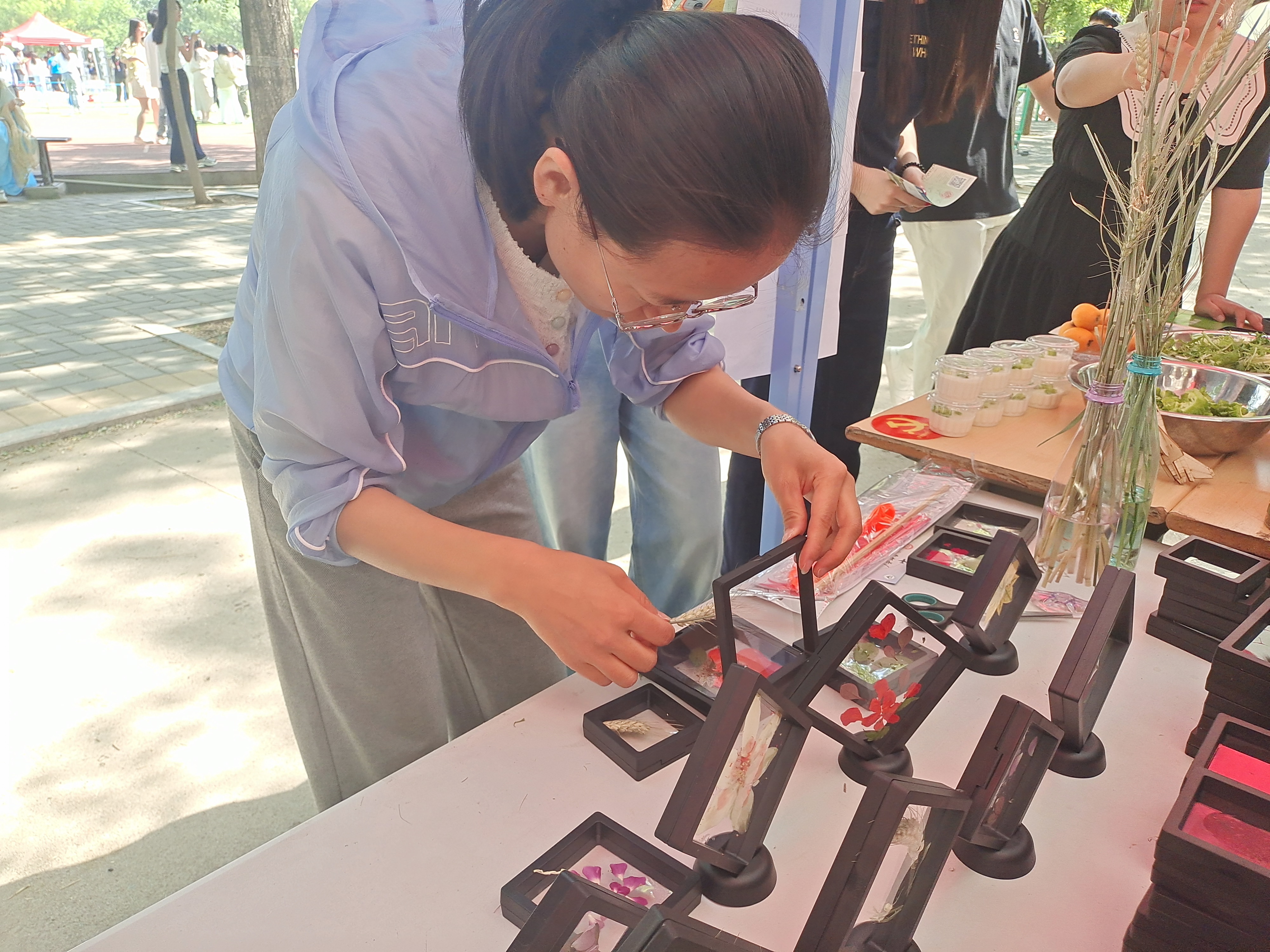 活动现场,我院的特色摊位别具一格,亮点纷呈。第一味:观鸟社团组织同学们使用专业望远镜观察鸟类,并结合宣传册科普滨州本地鸟类知识;第二味:爱食品社团推出苦味食物品尝活动,现场准备了苦瓜、苦菊等原生食材,并混合布丁、果冻做底,形成先苦后甜、令人深思的特殊味蕾体验;第三味:标本协会组织参与同学亲手采摘植物,制作成精美的植物标本,在动手实践中舒缓压力、放松身心。